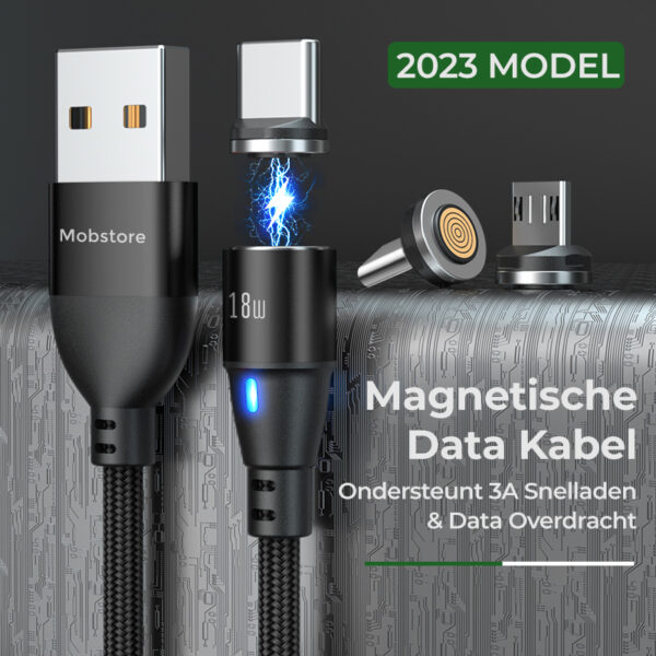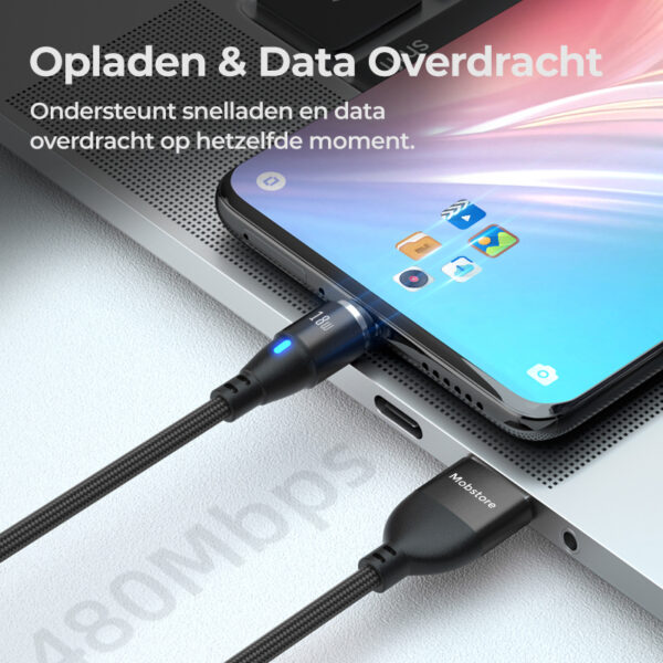 - Mobstore Magnetische Oplaadkabel – Zwart – 18W – USB A naar Magnetisch – Snellader – Dataoverdracht