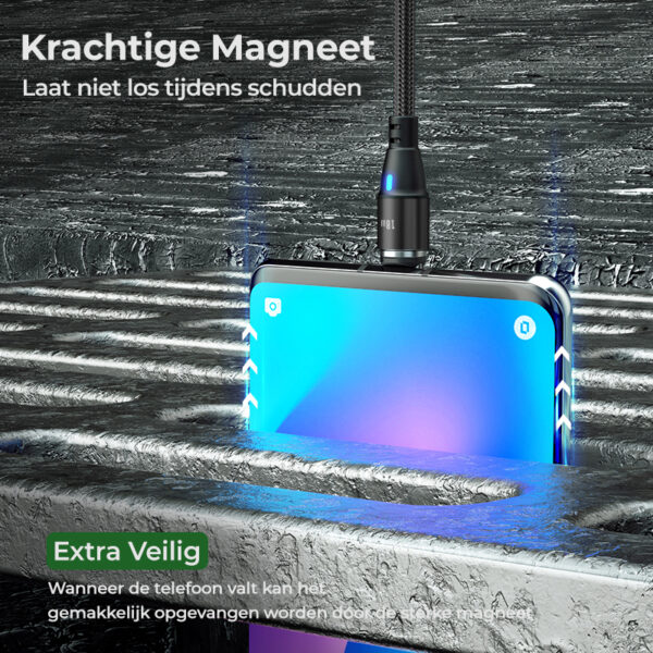 Met deze magnetische oplaadkabel van Mobstore kun je vanaf nu gemakkelijk jouw smartphone of andere apparaten opladen. De kabel wordt geleverd met 3 aanslutingen, namelijk een USB-C aansluiting, een Micro USB aansluiting en een Apple Lighting aansluiting. Je kunt dus elke smartphone hiermee gemakkelijk en snel weer volledig opladen. Gebruik de magnetische functie om stofdeeltjes en vuil weg te houden van je oplaadpoort terwijl je met een simpele klik gemakkelijk weer je smartphone kunt opladen. Zoeken naar je oplaadpoort in de avonden of ongemakkelijke posities is vanaf nu verleden tijd. De magneten in onze kabels kunnen met gemak het gewicht van je smartphone dragen.